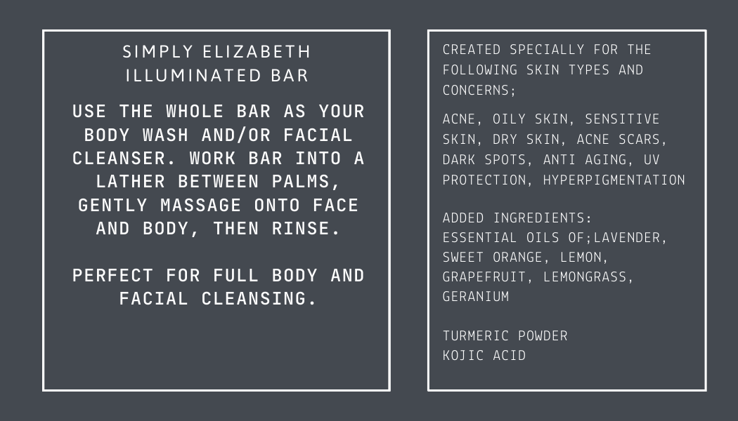 All of our bars are safe for both face & body and can double as your exfoliant and toner.